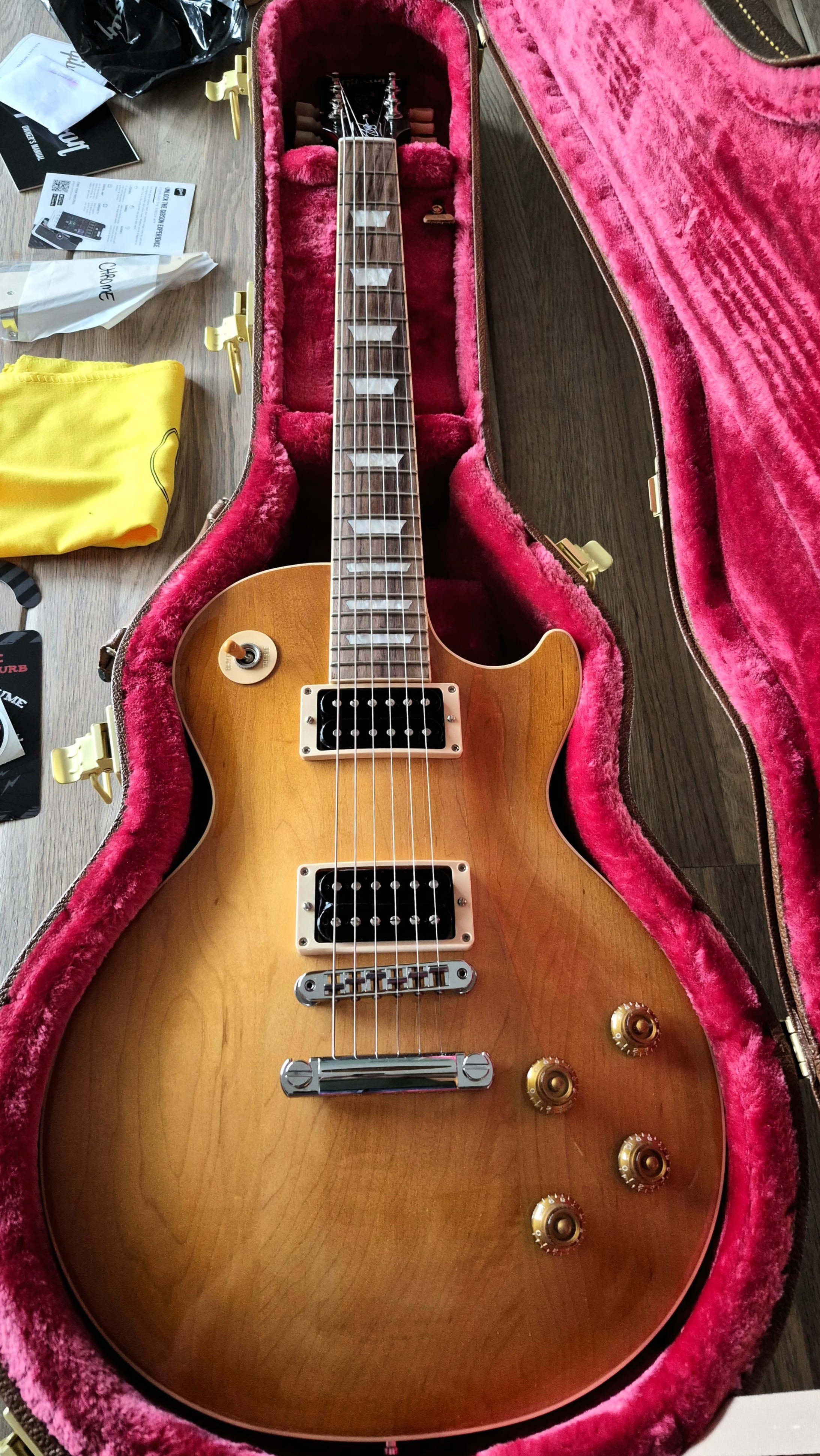 Lees meerIk kwam deze ‘Slash Victoria’ Goldtop Les Paul online tegen bij Gino Guitars Italy. Met een gewicht van slechts 3,8 kg moest ik ’m gewoon proberen, omdat ik doorgaans de wat lichtere Les Pauls goed vind klinken. Normaal gesproken speel ik altijd eerst op een gitaar voordat ik ’m koop, maar aangezien Krommenie → Italië zo’n 1000 kilometer is, heb ik de gok genomen en hem besteld. Dast ...